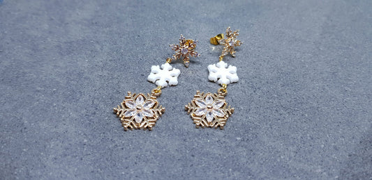 Brass Micro Pave Cubic Zirconia Gold Plated Snowflake Earrings