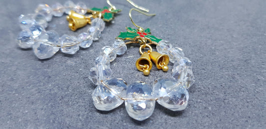Clear Glass Crystals Christmas Wreath Earrings