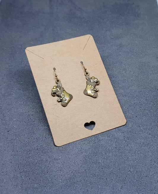 Antique Bronze Plated Christmas Stocking Earrings