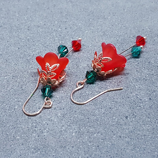 PRIMERO Crystals® Christmas Red Flower Earrings