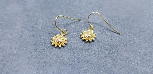 Real 18K Gold Plated Brass Gold Sunflower Earrings