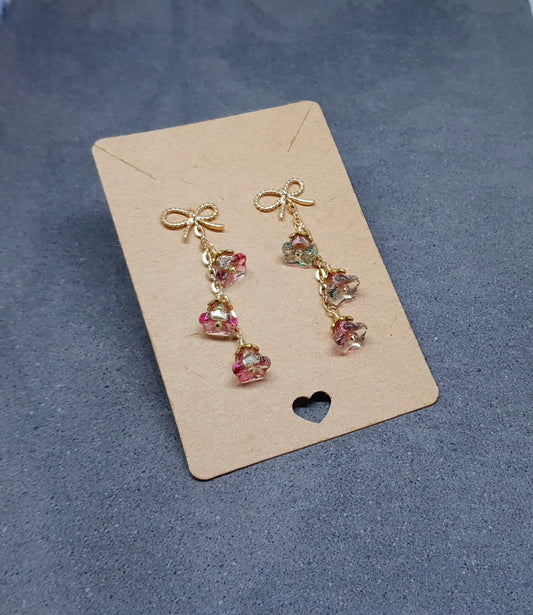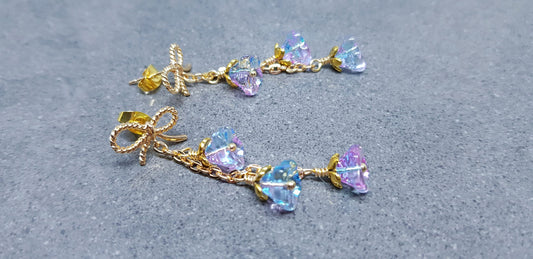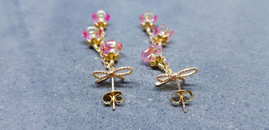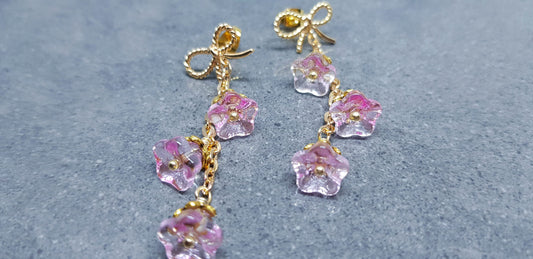 Glass Flower Earrings Brass bow studs