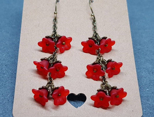 Red Double Flower Earrings