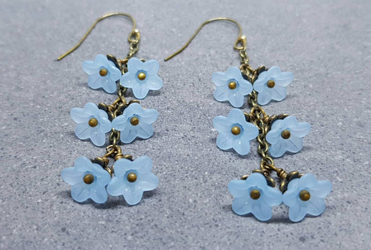 Pale Blue Double Flower Earrings