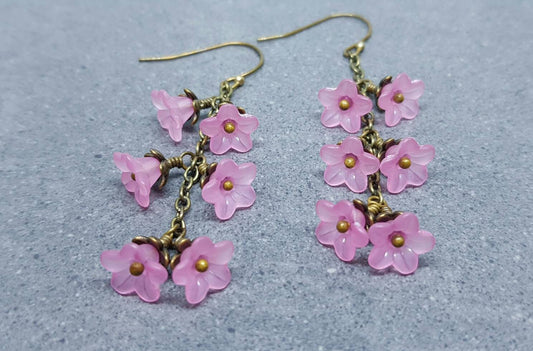 Clear Pink Flower Earrings