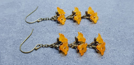 Orange Double Flower Earrings