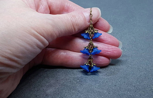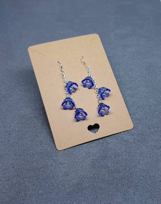 Clear Royal Blue Flower Earrings