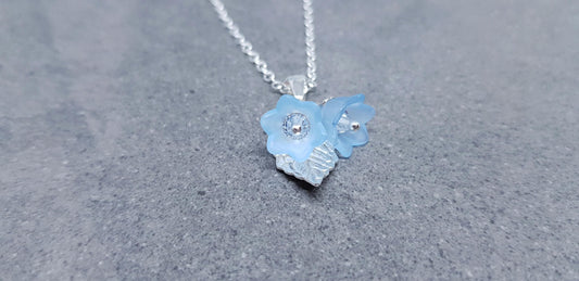 Clear PRIMERO Crystals® Blue Bellflower Flower Necklace