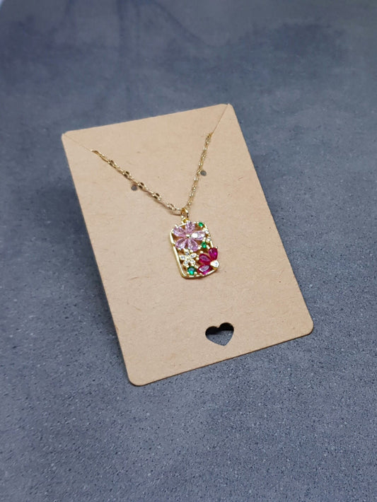 Brass Micro Pave Cubic Zirconia Flower Pendant Necklace