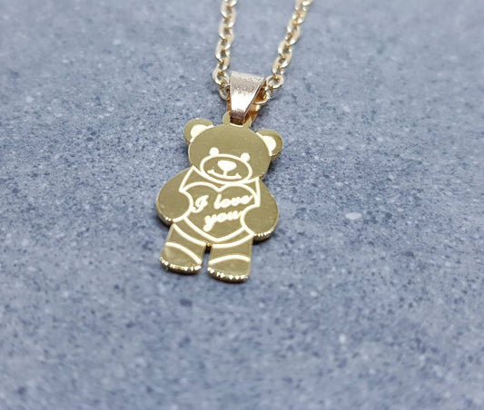 Bear with I Love You, Stainless Steel Necklace, Gold Plated Chain