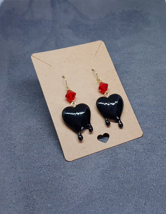 Black Heart Earrings, Hypoallergenic Ear Wires, Gothic Jewellery, Halloween Earrings, Dripping Heart