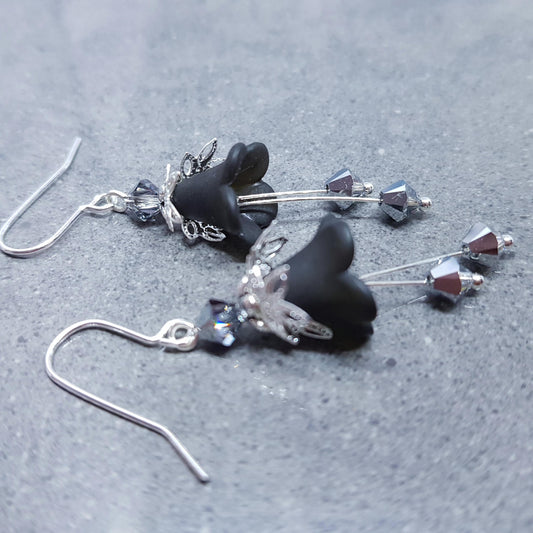 Black Flower Earrings with a choice of ear wires, Chrome PRIMERO Crystals®