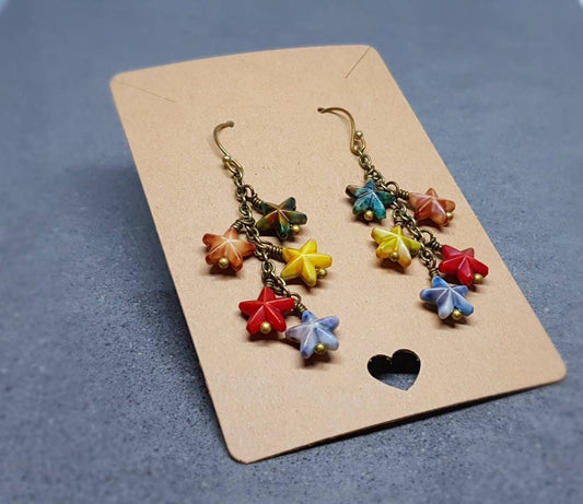 Star Earrings, Hypoallergenic Ear Wires, Fall Earrings, Choice of Ear Wires, Multicolored Stars, Autumnal, Boho Jewelry