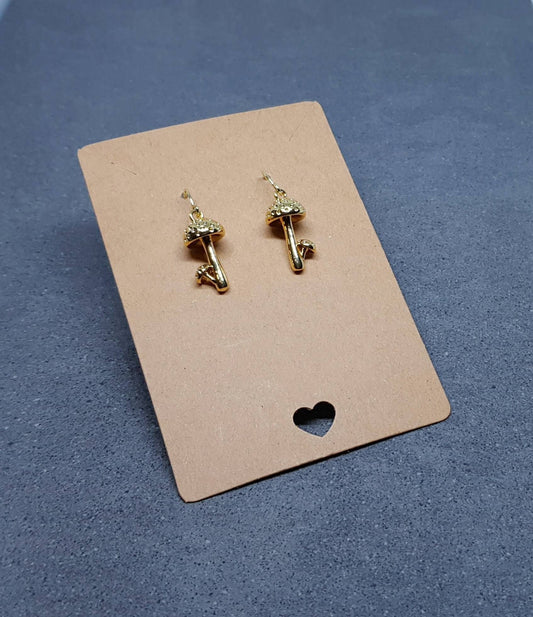 Mushroom Earrings, Hypoallergenic Ear Wires, Toad Stool Earrings, Gold Earrings, Gold Mushroom Earrings