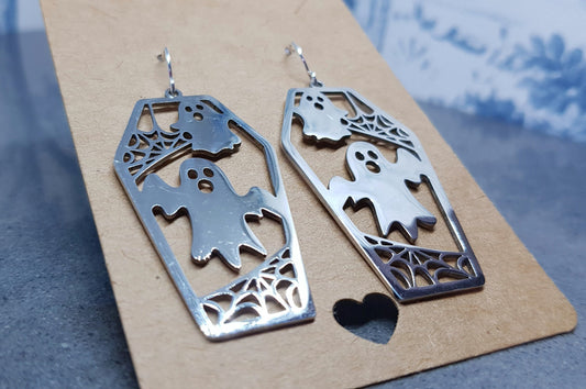 Ghost Coffin Earrings, Hypoallergenic Ear Wires, Autumn Fall Earrings, Halloween Earrings, Halloween Party, Hallows Eve, Stainless Steel