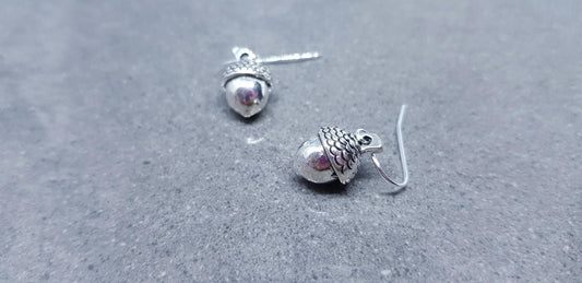 Large Acorn Earrings, Hypoallergenic Ear Wires, Sterling Silver Ear Wires, Fall Earrings, Silver Earrings, Autumn Earrings