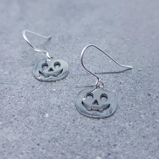 Pumpkin Earrings, Hypoallergenic Ear Wires, Jack O'lantern Earrings, Scary Pumpkin Jewelry, Autumn Earrings, Fall Halloween, Stainless Steel