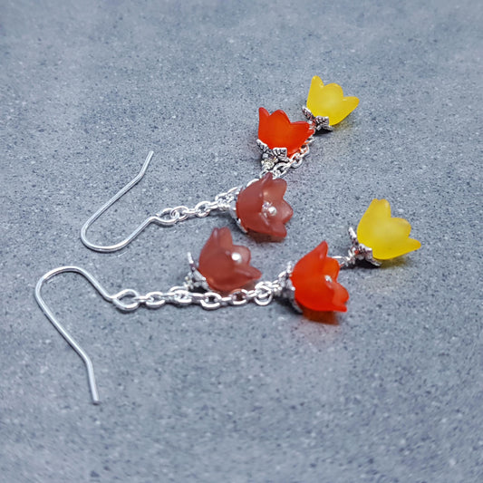 Flower Earrings, Hypoallergenic Ear Wires, Boho Jewelry, Yellow, Burnt Orange, Brown Earrings, Vintage Earrings, Fall/Autumn Earrings