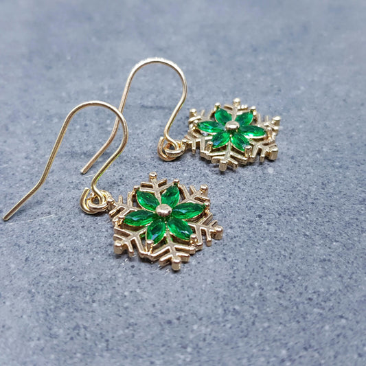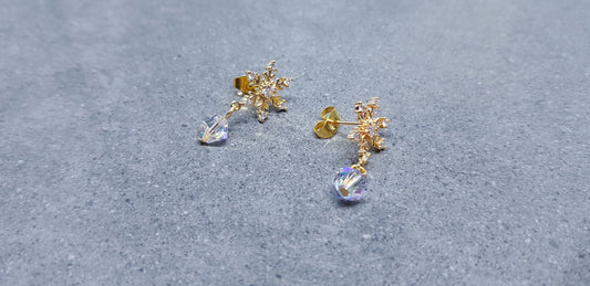 Snowflake Earrings, PRIMERO CRYSTALS®, Gold Snowflake Earrings, Small Drop Earrings, Cubic Zirconia Studs, Nickle Free, Festive Earrings