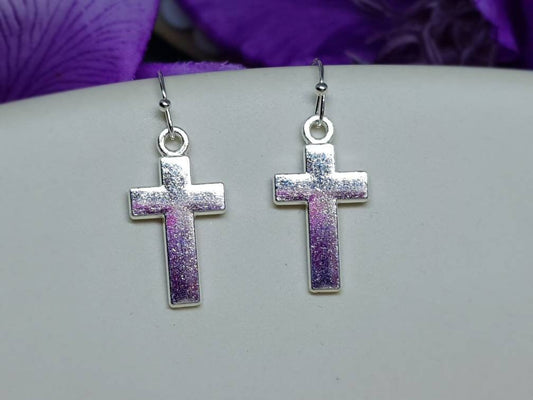 Silver Cross Earrings, Hypoallergenic Ear Wires, Cross Earrings, Cross Jewelry, Gothic Jewellery