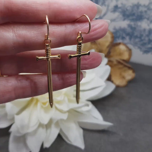 Miniature Stainless Steel Real 18K Gold Plated Sword Earrings