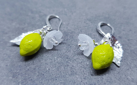 Glass Lime Fruit Earrings, Hypoallergenic Ear Wires, Glass Jewellery, Flower Earrings, PRIMERO Crystals®, Super Cute Earrings, Gift for her