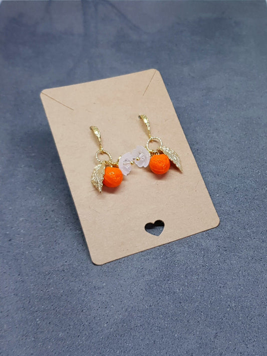 Glass Orange Fruit Earrings, Hypoallergenic Ear Wires, Flower Earrings, Glass Earrings, PRIMERO Crystals®, Gift for her