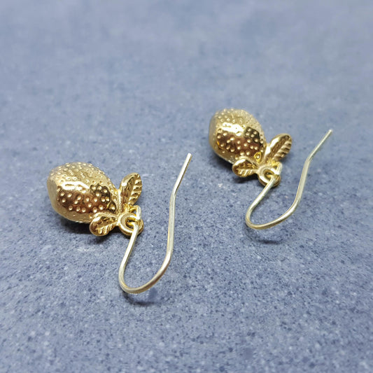 Strawberry Earrings, Hypoallergenic Ear Wires, Fruit Earrings, Super Cute Earrings, Gold Strawberries, Gift Ideas