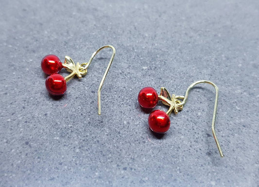 Cherry Earrings, Hypoallergenic Ear Wires, Cherry Blossom Earrings, Summer Earrings