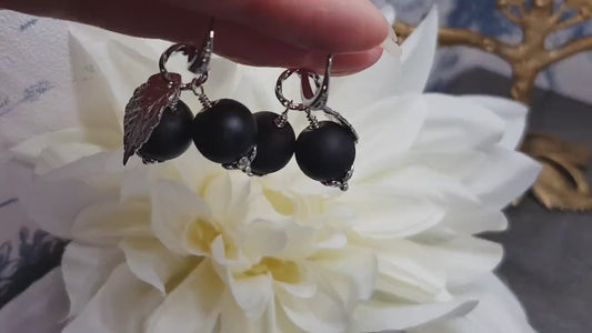 Glass Blackcurrant Earrings, Fruit Earrings, Hypoallergenic Brass Ear Wires, Berry Earrings, Glass Jewelry