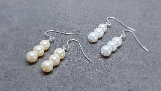 Glass Pearl Earrings, White Pearl Earrings, Round White Pearls, White Pearl Jewelry, Cream Pearl Earrings