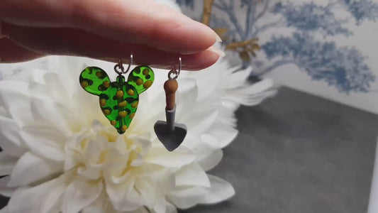 Glass Cactus Earrings, Trowel Earrings, Glass Jewelry, Hypoallergenic, Gardeners Earrings, Succulent Earrings, Gift Ideas, Green Earrings