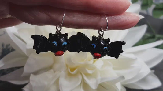 Glass Bat Earrings, Autumn Fall Earrings, Halloween Earrings, Halloween Party, Hallows Eve