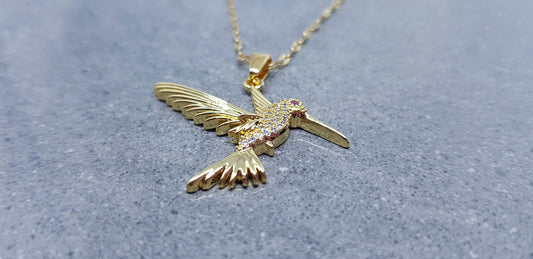 Hummingbird Necklace, Brass Micro Pave Cubic Zirconia Jewellery, Gold Jewellery, Bird Necklace