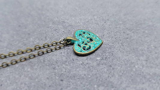 Heart Choker, Minimalistic Choker, Antique Bronze verdigris Tone Choker, Verdigris Heart Necklace, Heart Necklace