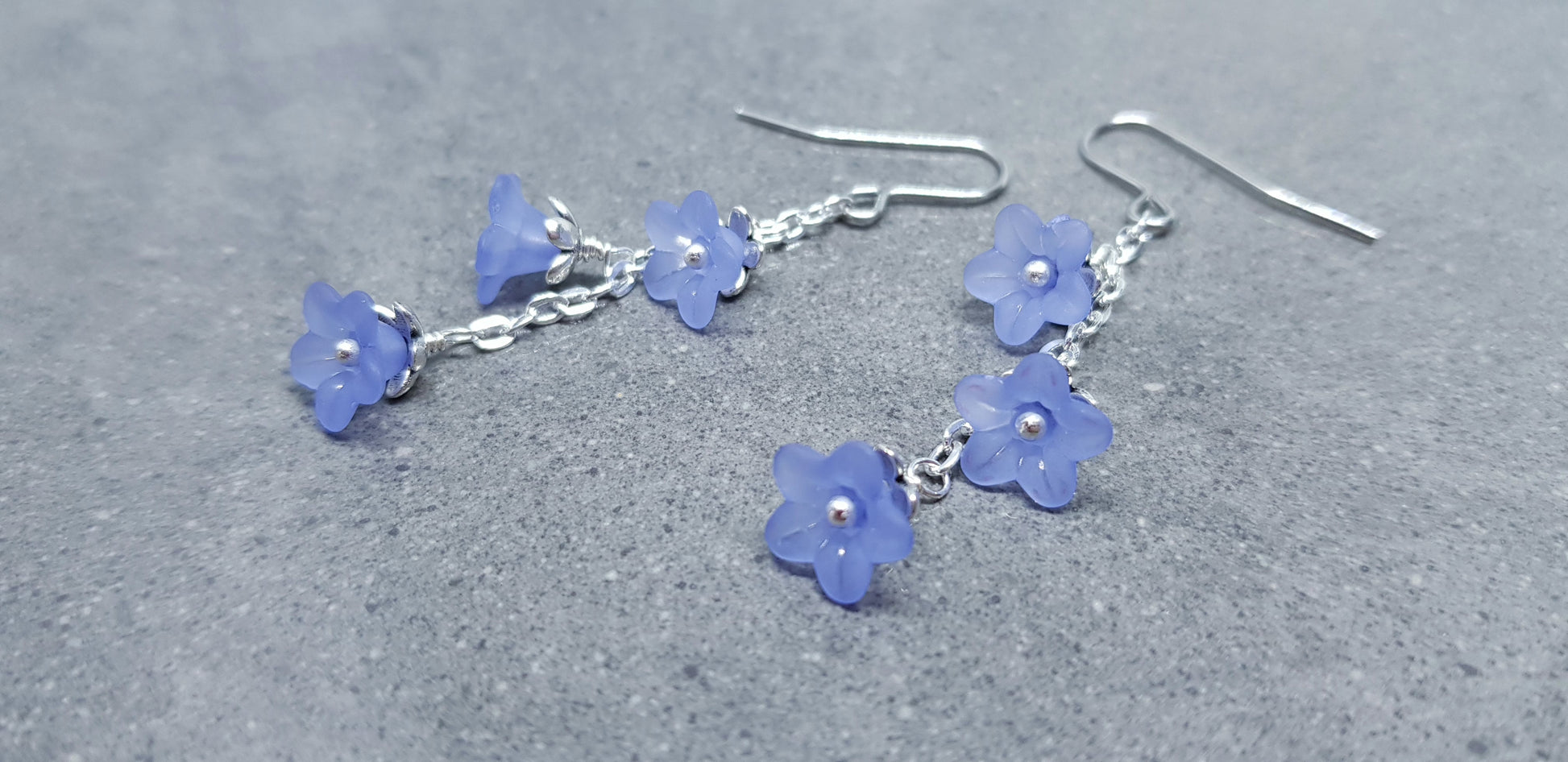 • Mattierte lavendelblaue Lucite-Acrylblüten mit den Maßen 10 mm x 5 mm